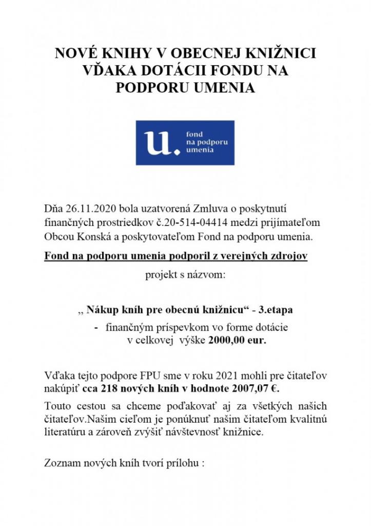 Projekt : "Nákup kníh pre obecnú knižnicu" - 3. etapa