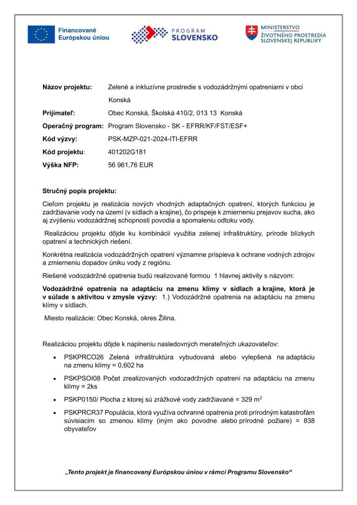 Zelené a inkluzívne prostredie s vodozádržnými opatreniami v obci Konskáweb.pdf Typ: PDF dokument, Veľkosť: 176.85 kB